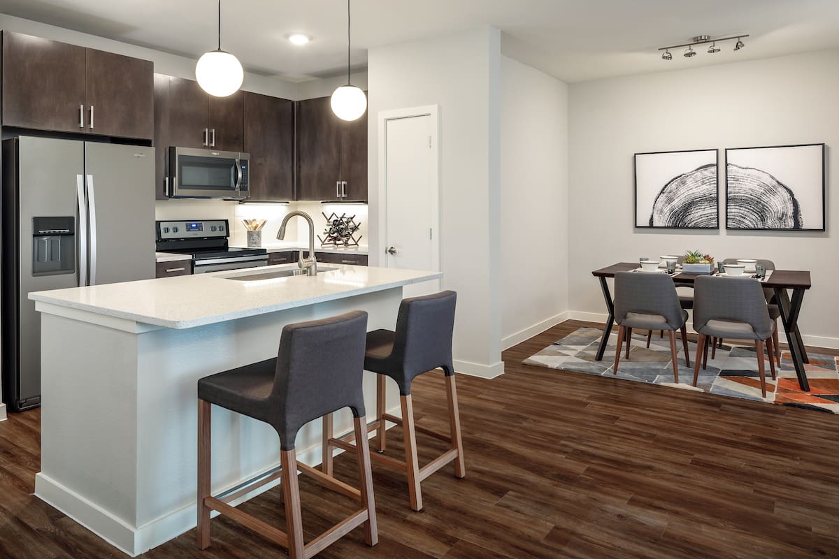Step inside Latitude at Presidio and experience the lifestyle that sets us apart. Our photo gallery showcases stunning details of our apartments in Cedar Park, TX, from spacious floor plans with wood-style flooring and stainless-steel appliances to resort-inspired community spaces like our dual-level fitness center and sparkling swimming pool with private cabanas. Whether you’re looking for a cozy one-bedroom retreat or a roomy three-bedroom layout, our gallery lets you visualize what life could look like in your new home.